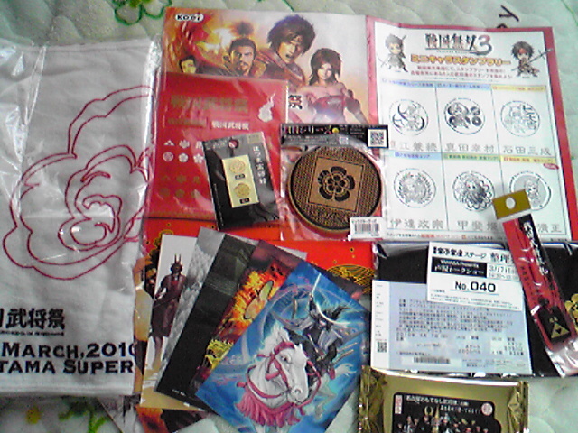 公式のタオルと蒔絵シール(織田)・ストラップ(北条)購入。